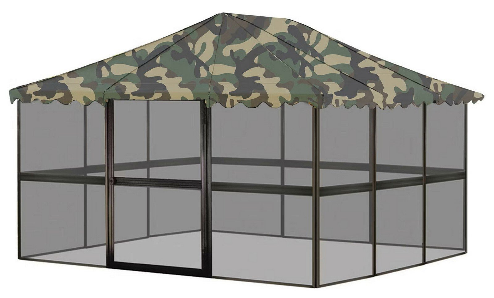 This easy-to-construct screen house from is 90-percent preassembled for quick and easy set up. Adds 134 sq. ft. of stand a-lone three season living space to your backyard, summer cottage, travel trailer or campground. The brown screened frame features a camouflage roof constructed of 3-ply vinyl that resists mildew, and grommets that prevent water pocketing and sagging. Rustproof fiberglass screens allow air to circulate while keeping out flies, mosquitoes and other annoying insects.