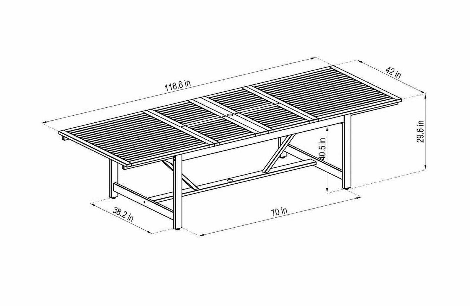 - Length when extended with one leaf: 98"; length when extended with two leaf: 118"; length when closed 79"