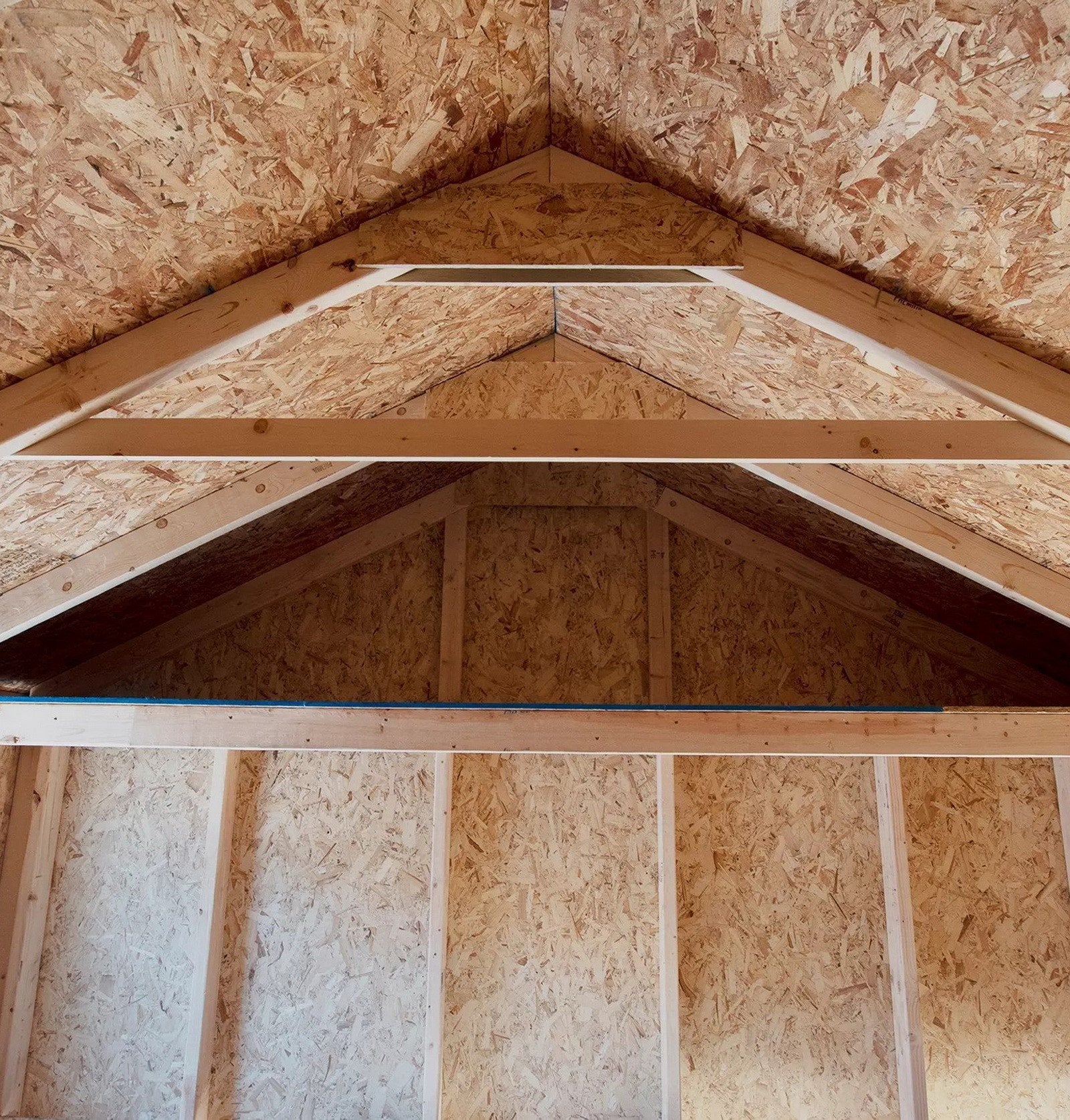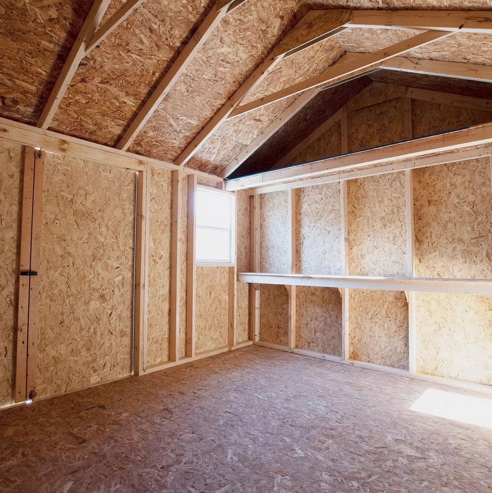 - Barn-style roof provides plenty of vertical space