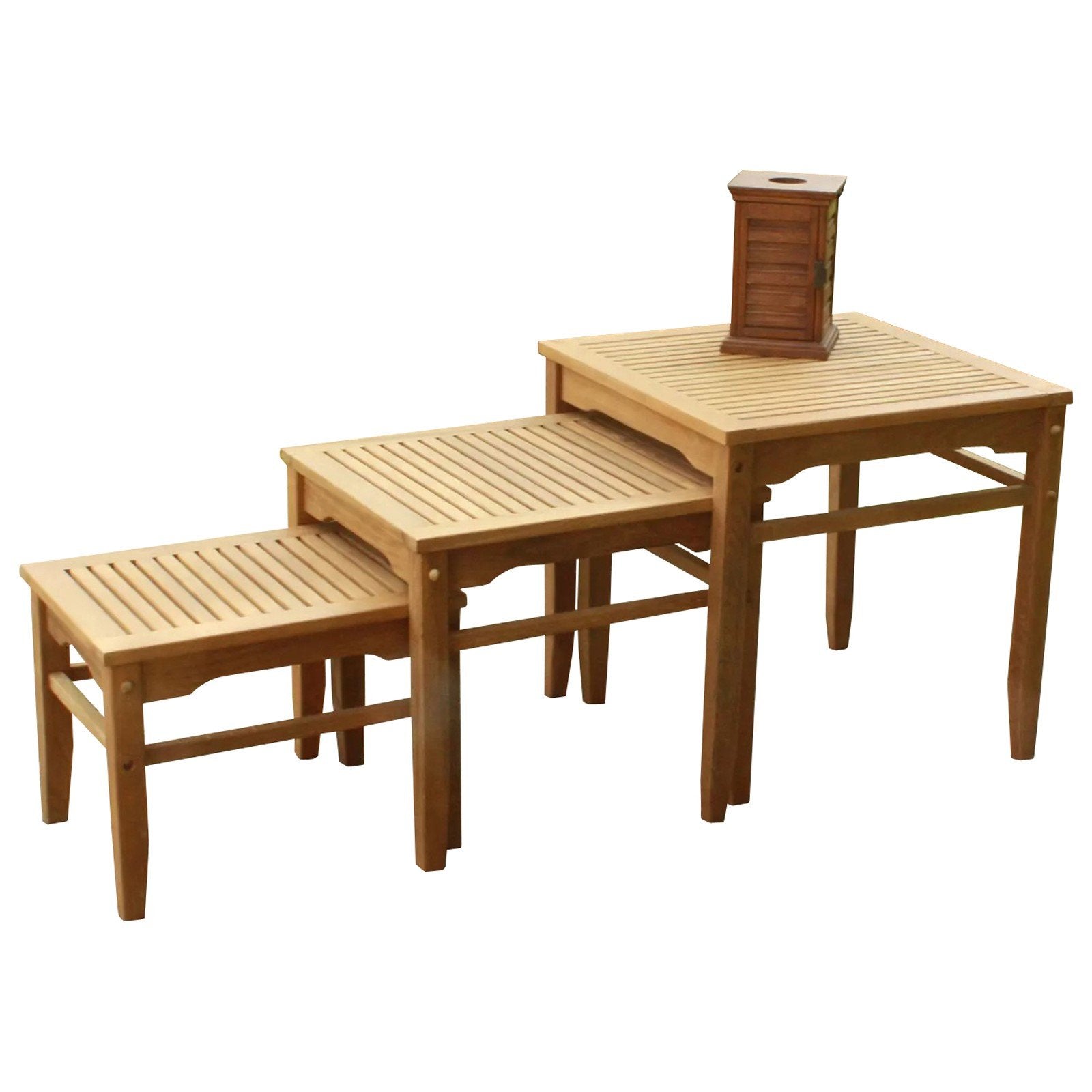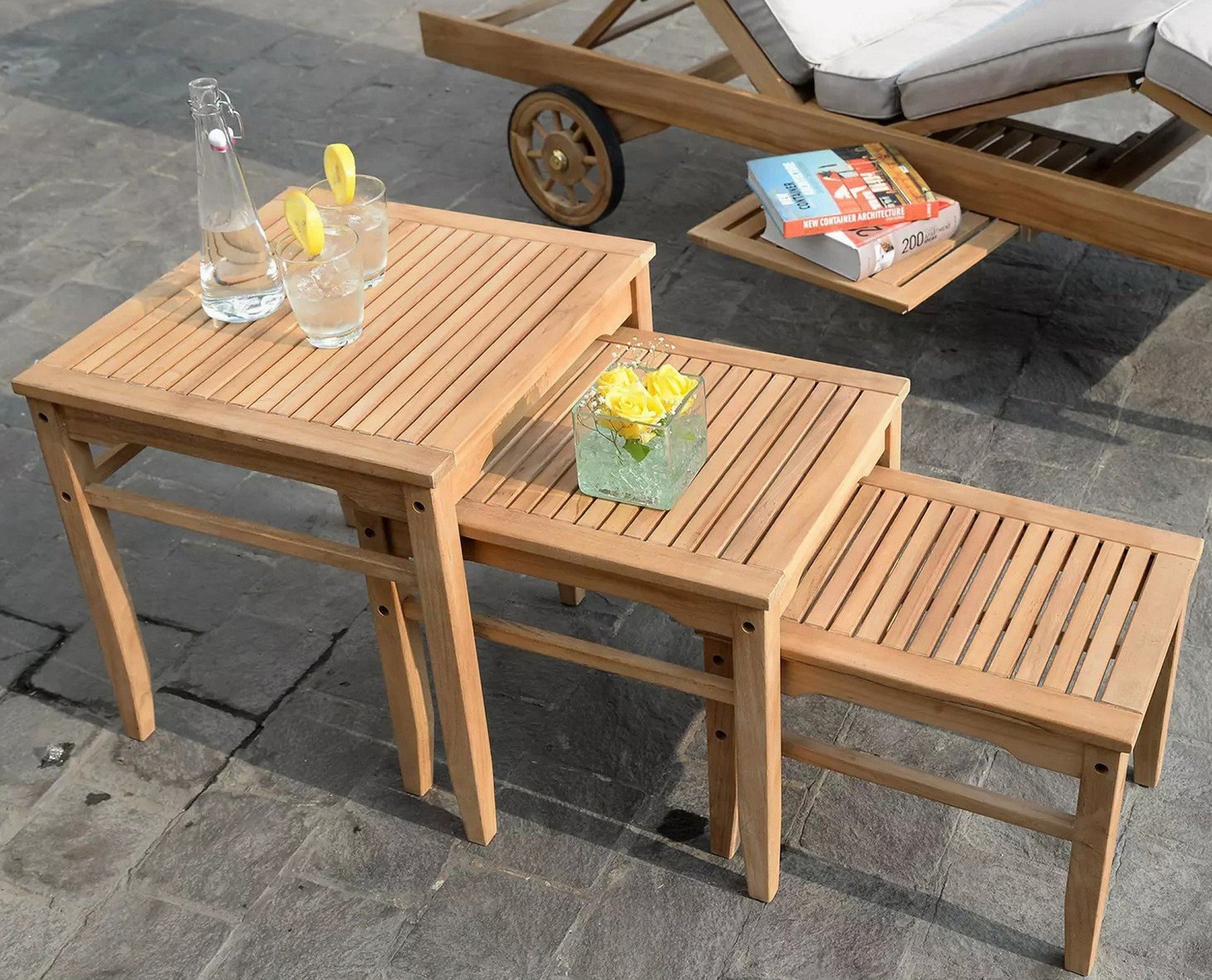 3-Piece Outdoor Teak Wood Nesting Side Table Set
