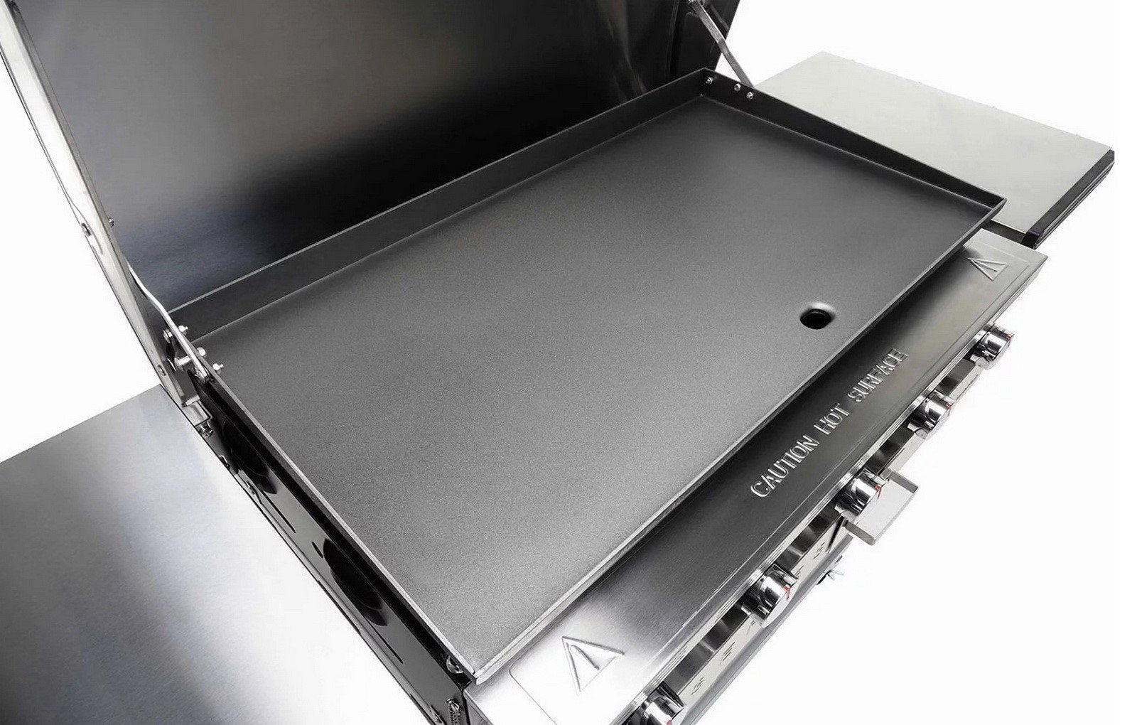 - Multipurpose stainless steel hood will shield and protect the griddle in use and during storage