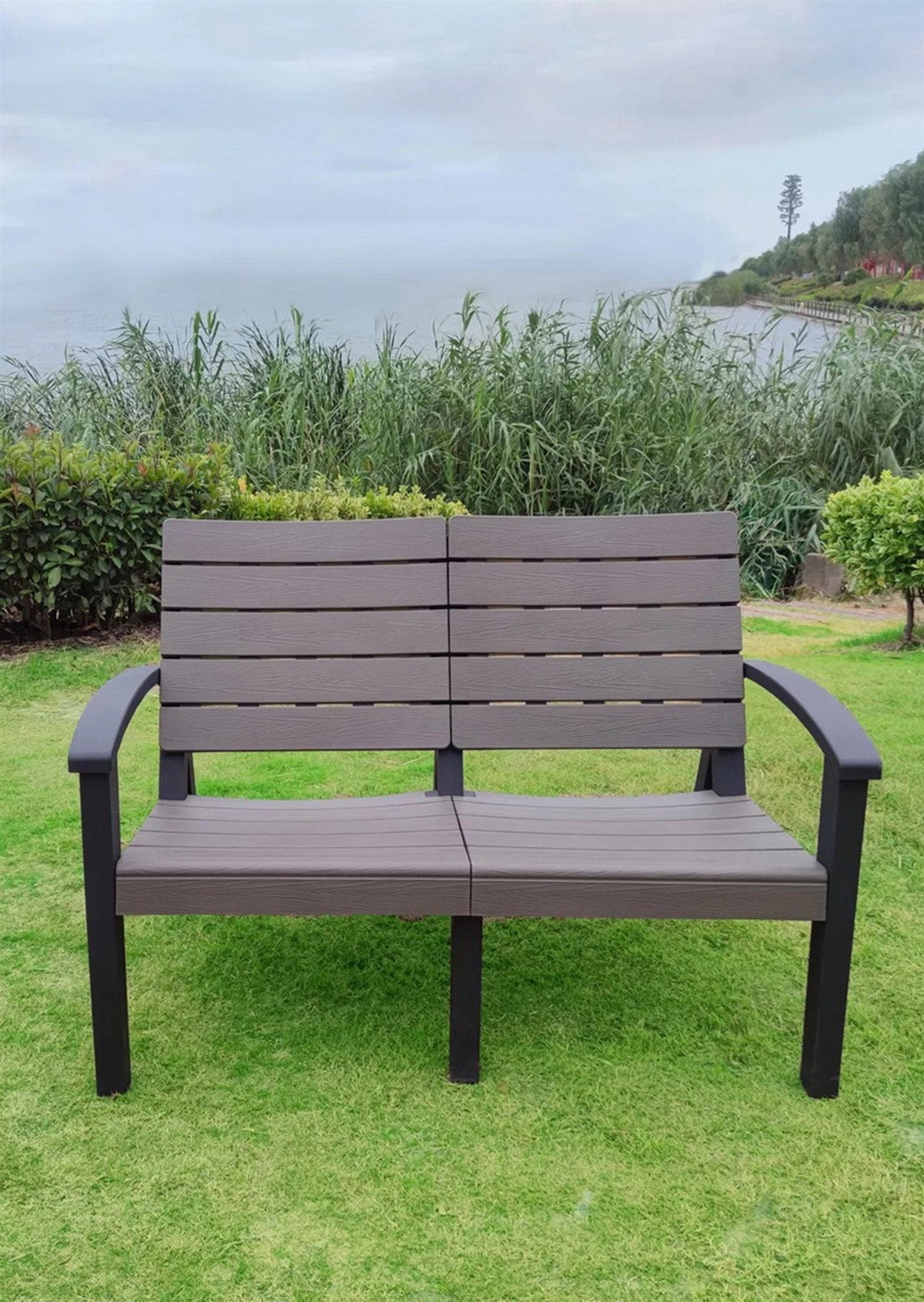 All Weather Resin Outdoor Loveseat Garden Bench creates a charming, cozy seating area for two comfortably. The sleek lines, minimalistic design, and sturdy construction add a touch of sophistication to blend with virtually any style. This versatile loveseat, both attractive and durable, features slated back and seat and convenient armrests. Its lightweight design makes it easy to move around with ease. Enjoy this quick seating solution, easy to assemble. Perfect for adding extra seating to complement another patio set or creating a spot to relax in a quiet corner of your plot, this bench is the perfect accessory for you to enjoy your backyard. Made from solid polypropylene resin, it features a mission-style design with arched armrests and slatted seat and back for a classic look on your deck. Since this entire unit is weather-resistant, it will stand the test of time.