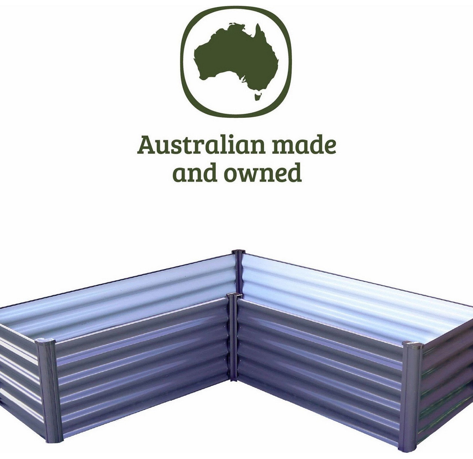 All beds provide easy access from all sides, allowing you to tend to every plant in your garden with ease. The L-Shaped Raised Galvanized Steel Garden Bed provide ample drainage to help prevent root rot. The high sidewalls allow for deeper root growth and create a defense against unwanted weeds coming into your garden. Constructed with galvanized steel panels and ABS connectors, garden beds are weather tested and will not rust or rot and they are also mildew resistant. Made in Australia.