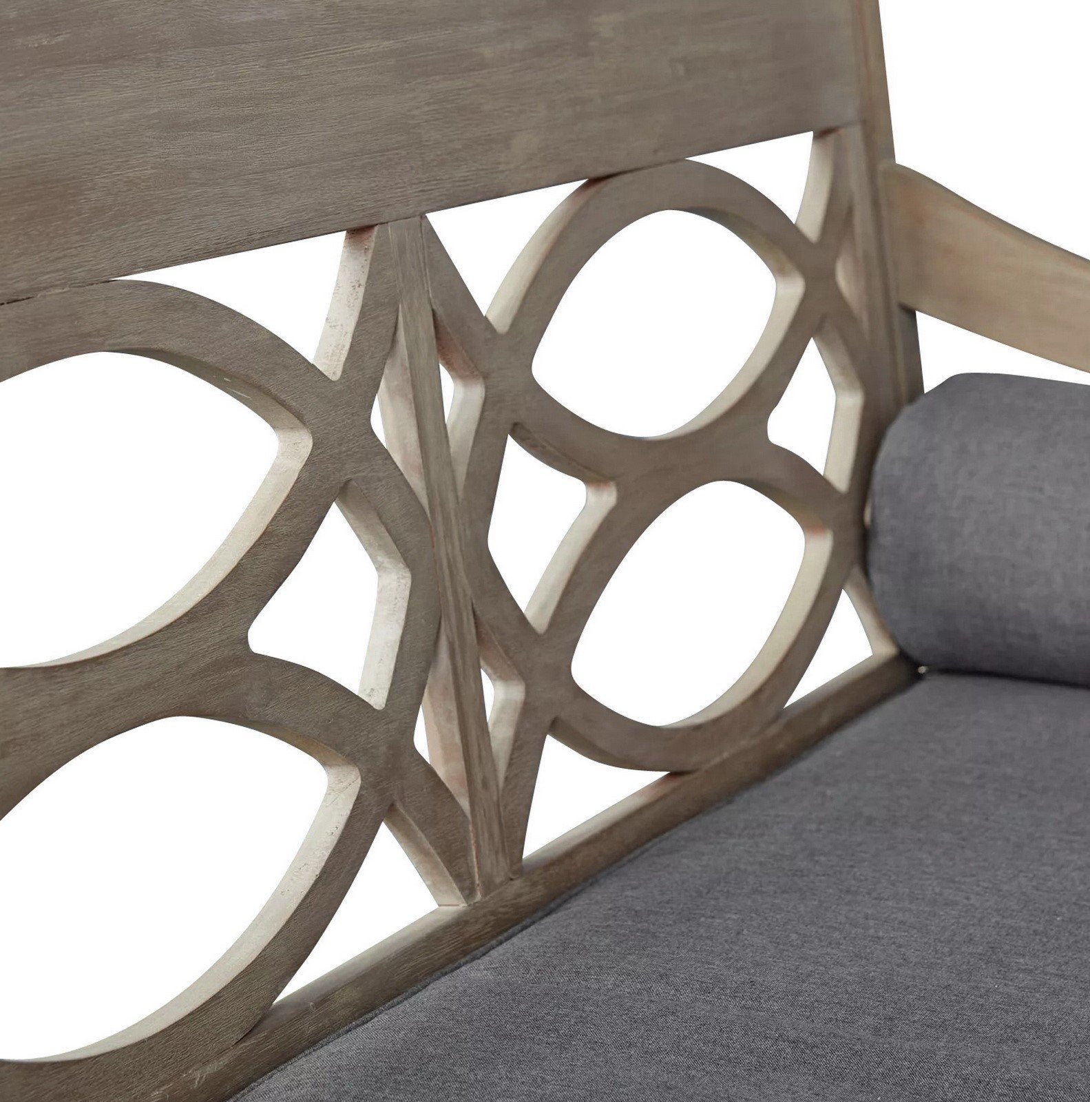 A unique combination of comfort and style, the Daybed Swing offers the tranquil feel of a daybed with an added gentle swing motion. The seating is a generous 31.5” deep and features two bolster pillows, making it ideal for a relaxing nap or curling up with loved ones. Crafted with a beautiful complex back design that flows with the curved arm and turned front legs, it's a dreamy addition to any porch or outdoor area.