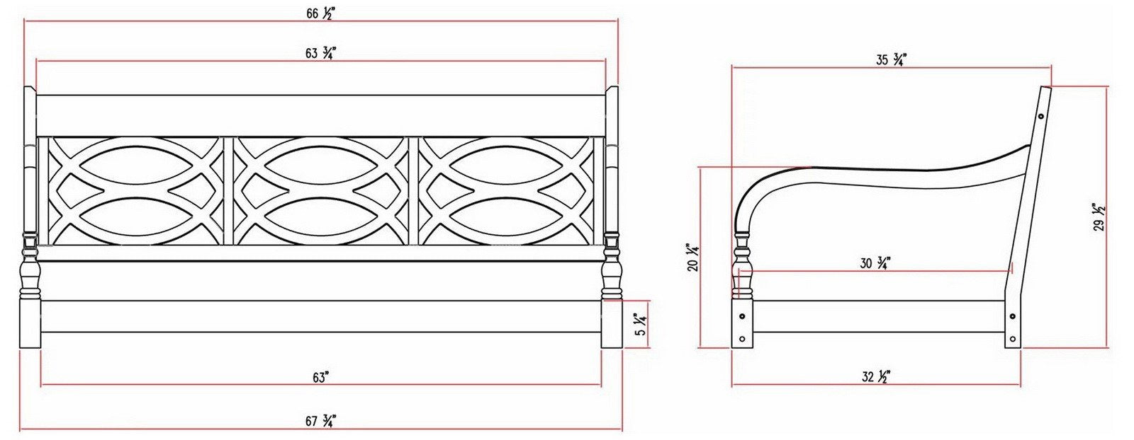 - Assembled Dimensions: 67.75"L x 35.75"W x 29.5"H