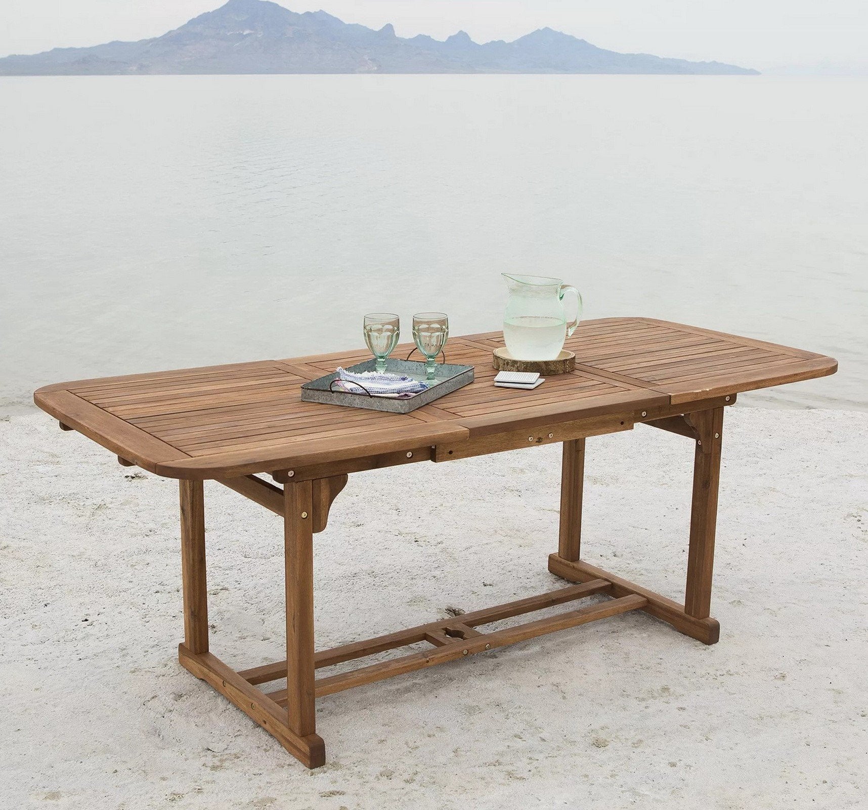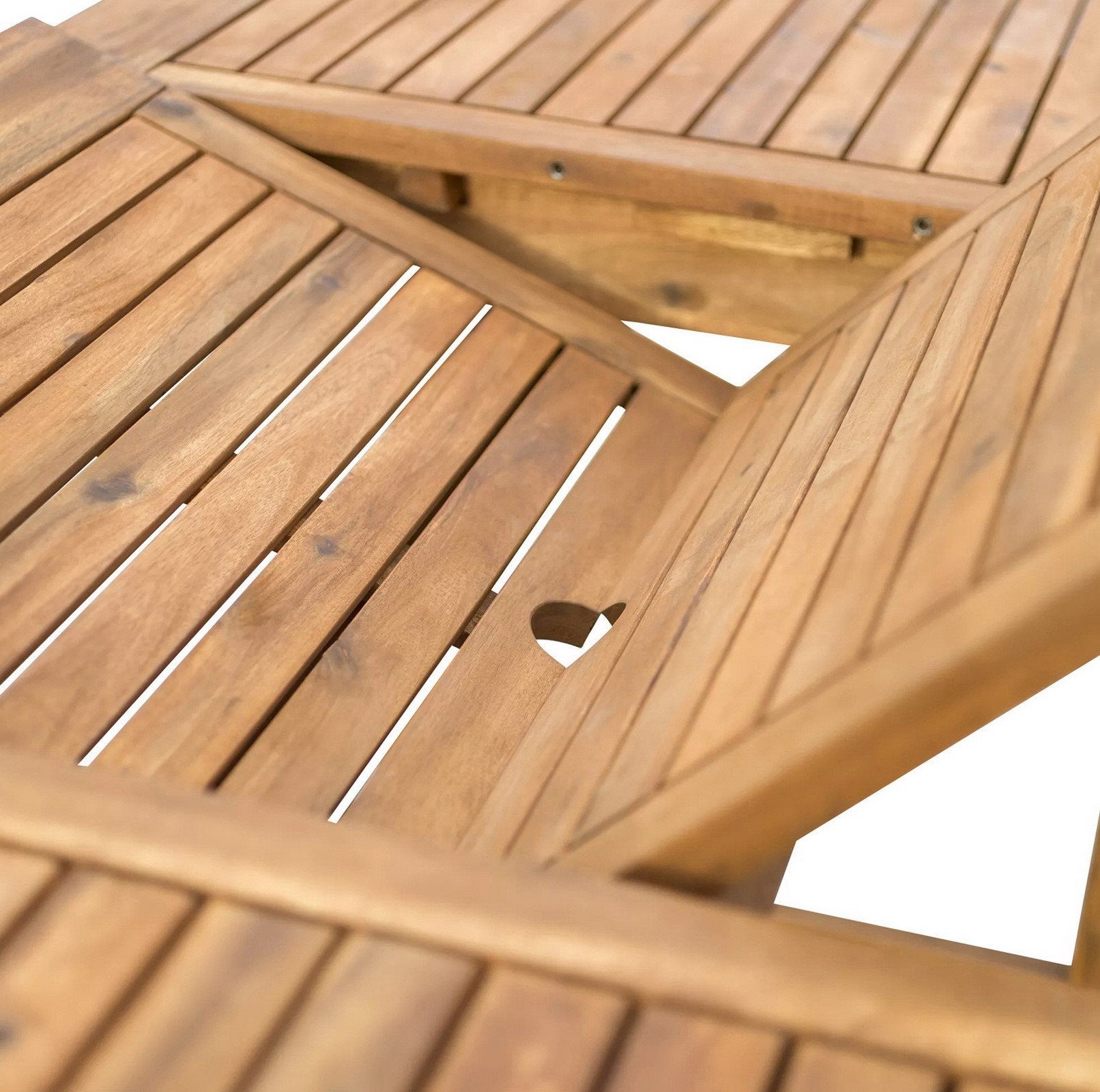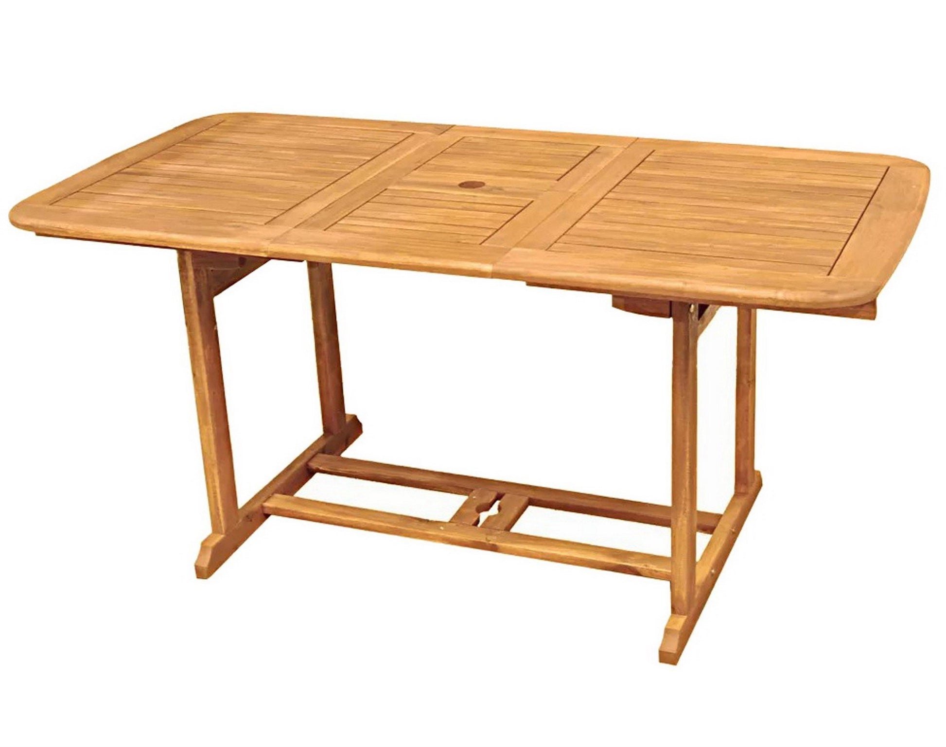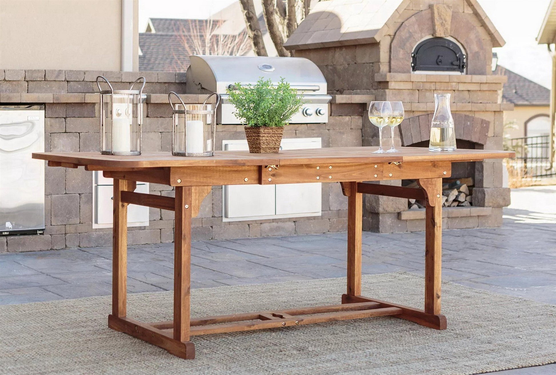 Outdoor Extendable Acacia Wood Dining Table Hardwood 35" x 55" to 79" With Leaf