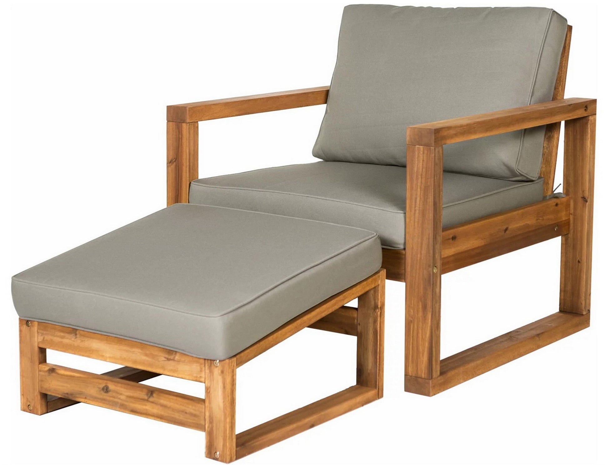 Outdoor Weather Resistant Arbor Acacia Wood Chair Ottoman With Cushions