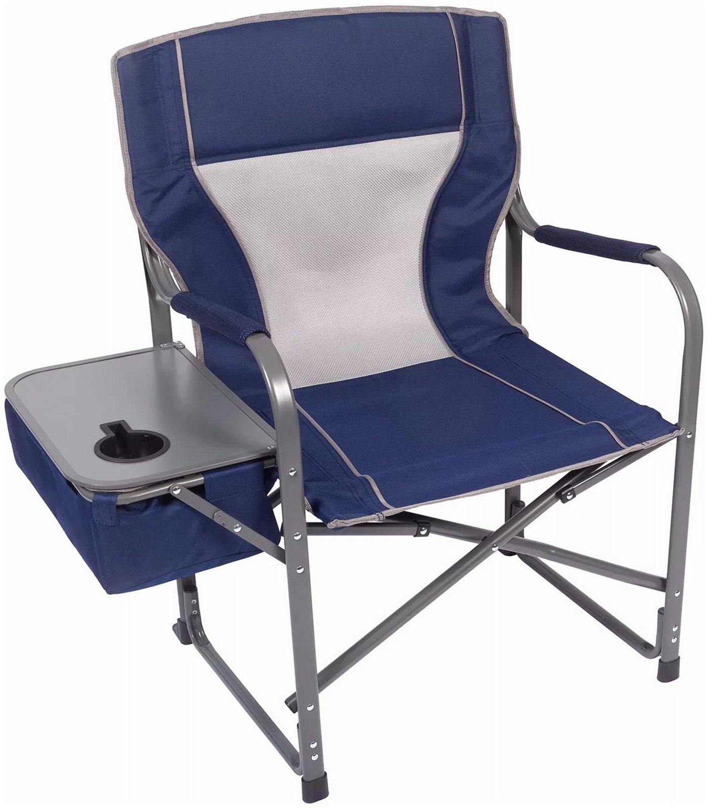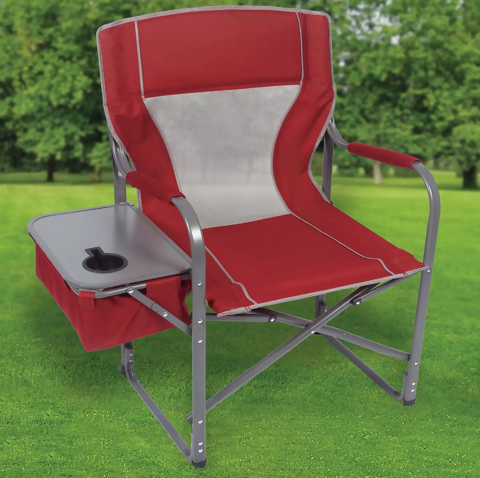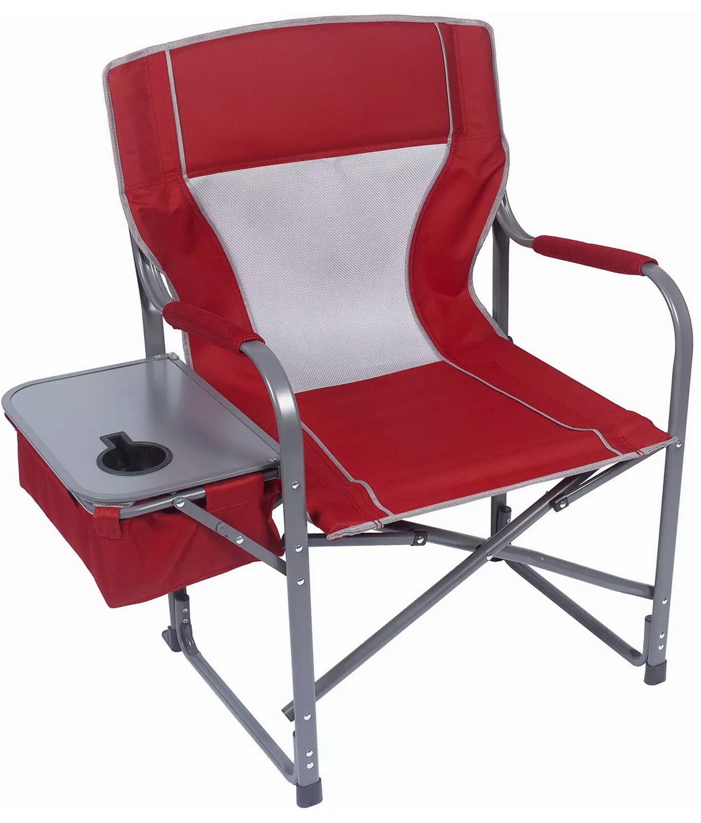 Available in a choice of four colors, the director's chair is built with comfortable padded arms and headrest. The cool breathable, moisture-wicking mesh and durable polyester fabric keeps you feeling good–no matter the weather. The oversized director's chair features a rugged steel frame for durability with a 325 lbs. weight capacity. Portable, this chair folds flat for convenient transport and storage. Keep a pair in the car for anytime you might need them!