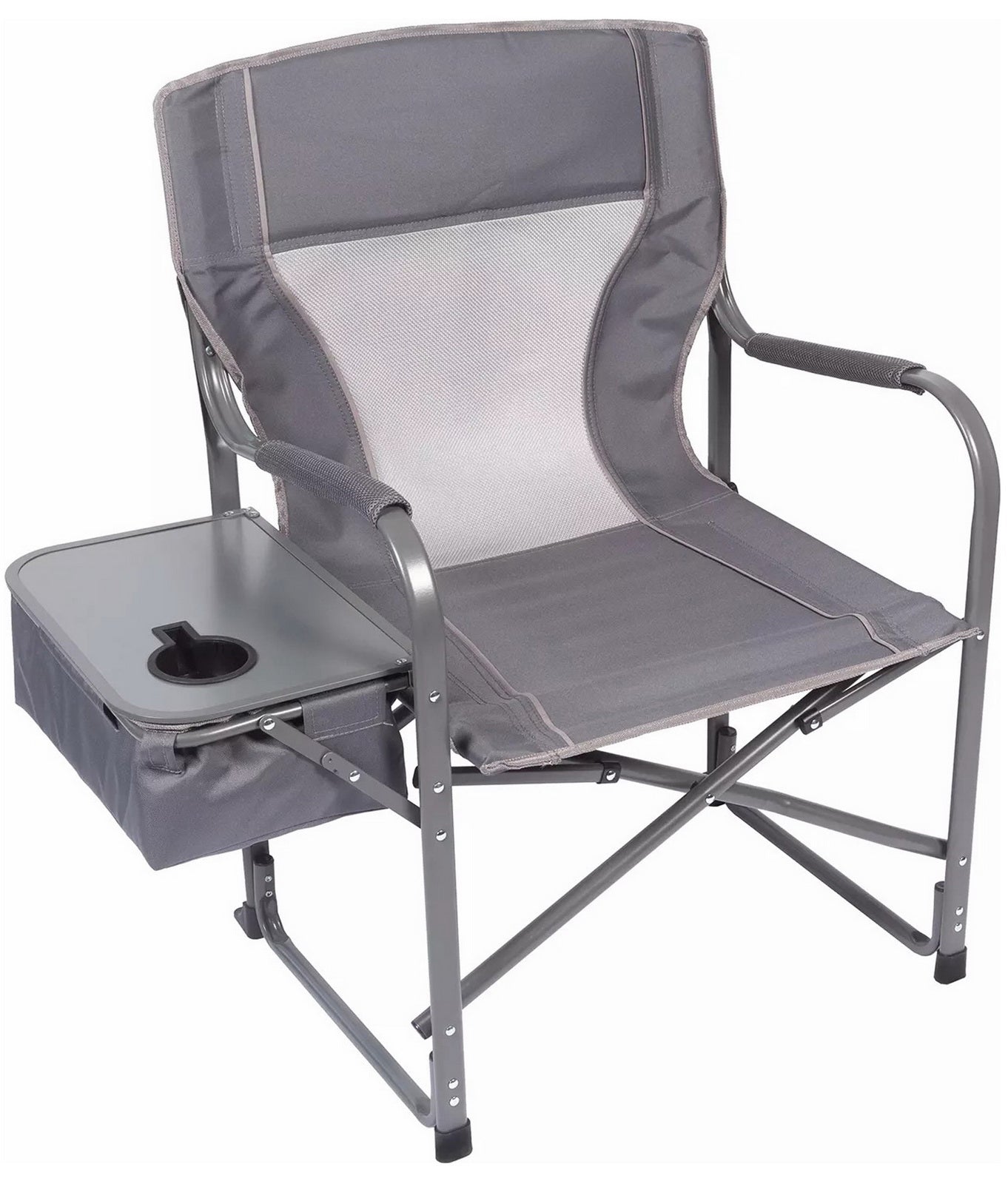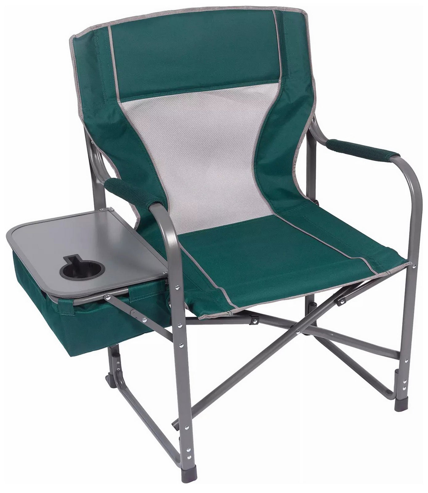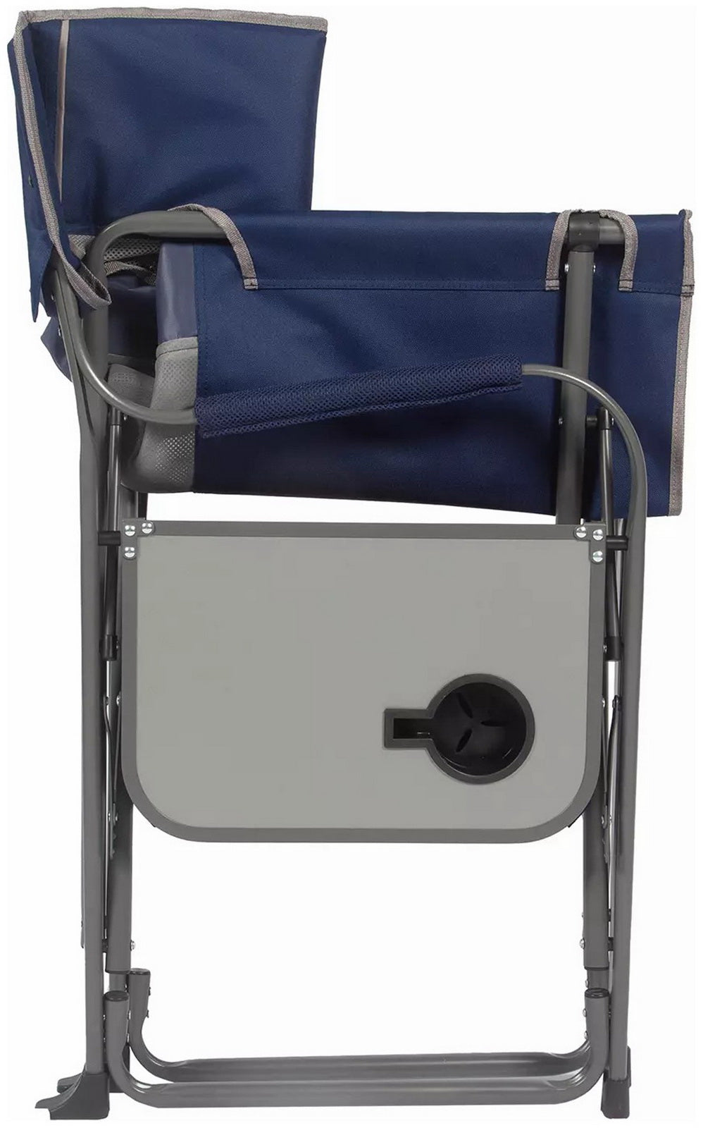 Available in a choice of four colors, the director's chair is built with comfortable padded arms and headrest. The cool breathable, moisture-wicking mesh and durable polyester fabric keeps you feeling good–no matter the weather. The oversized director's chair features a rugged steel frame for durability with a 325 lbs. weight capacity. Portable, this chair folds flat for convenient transport and storage. Keep a pair in the car for anytime you might need them!