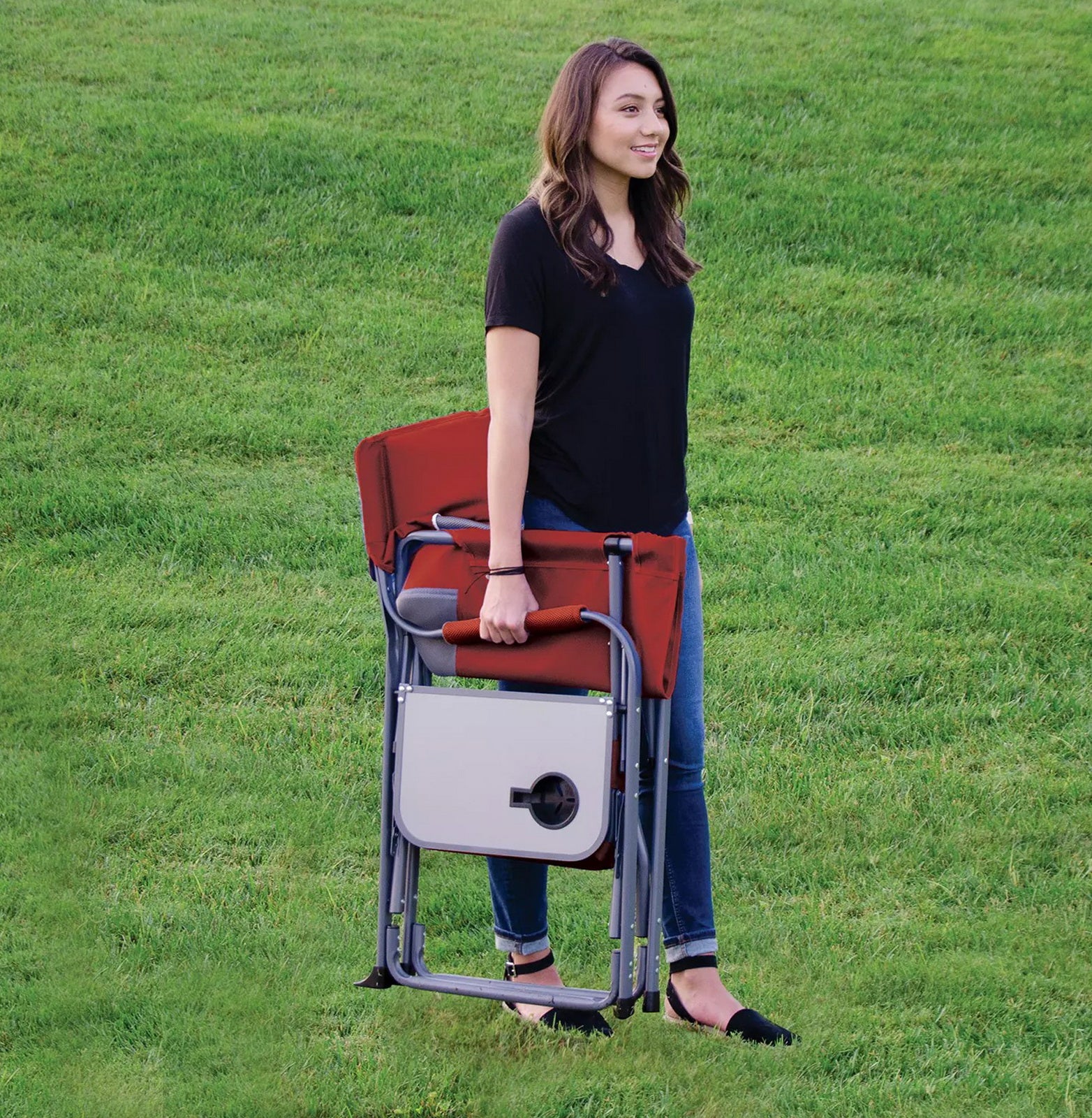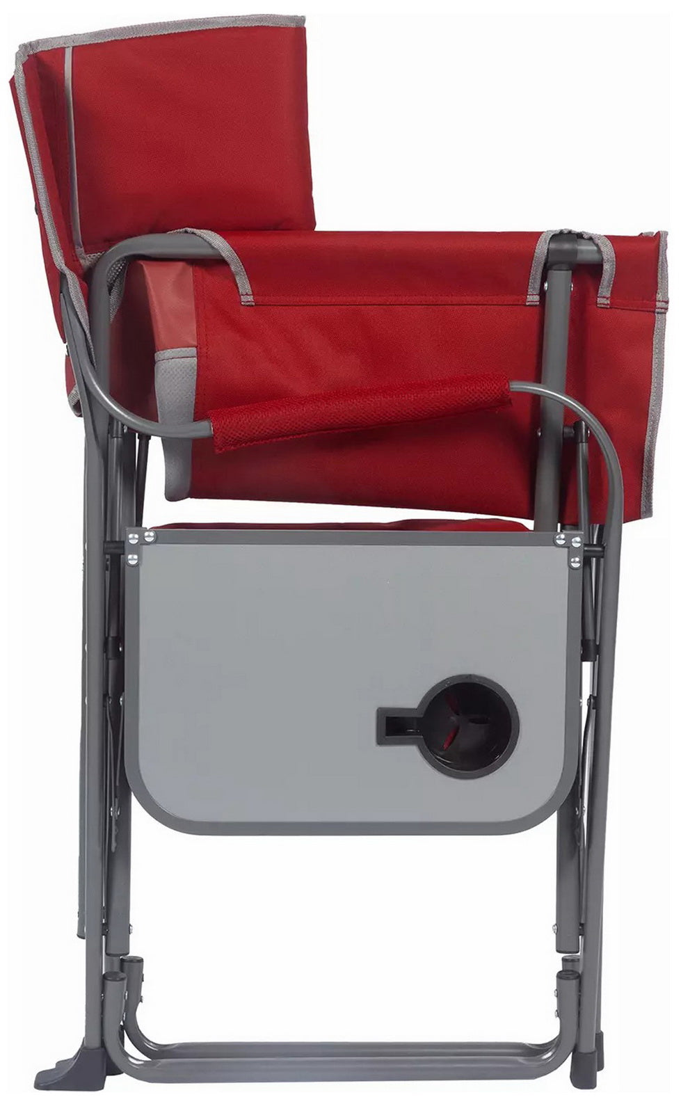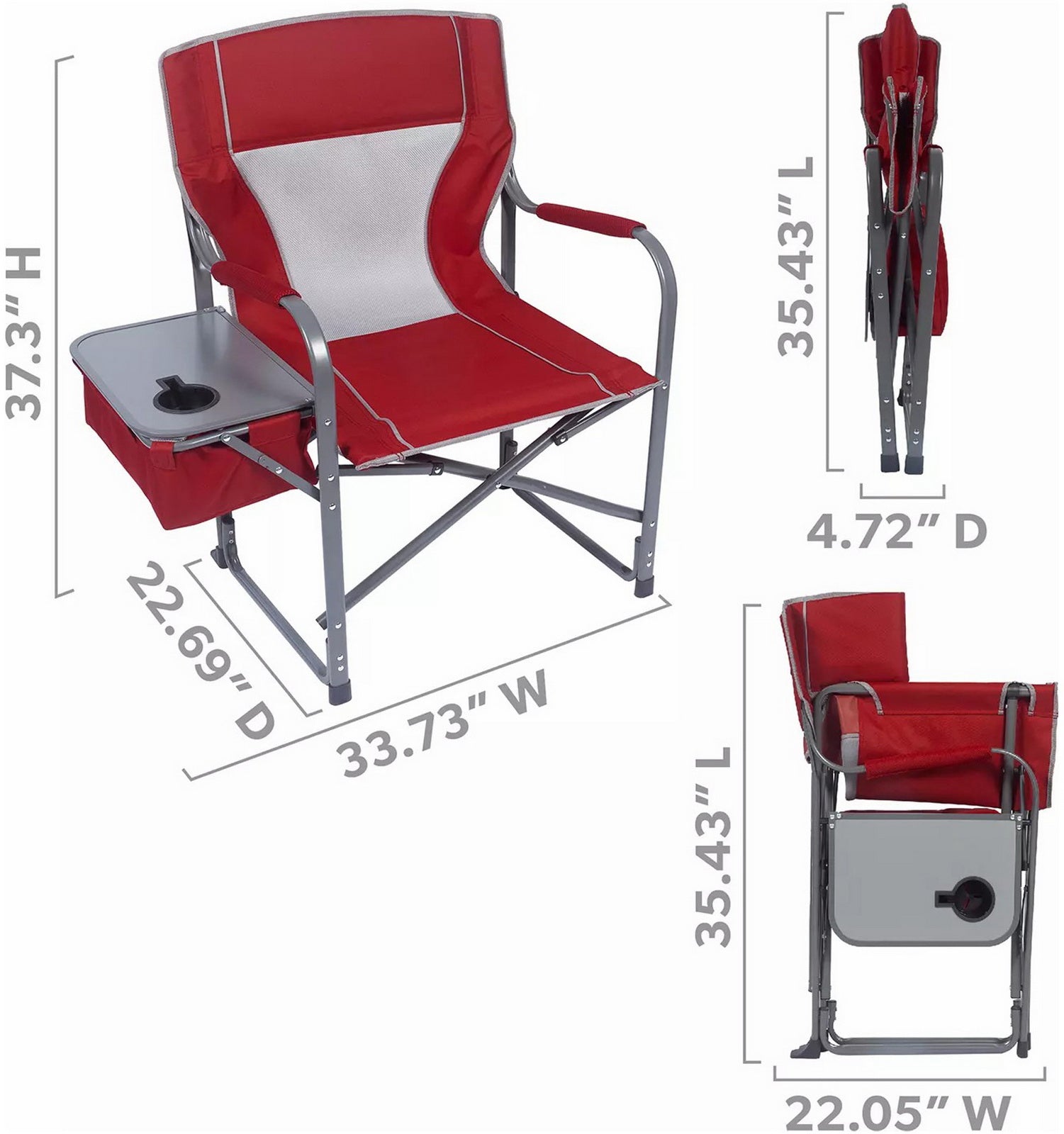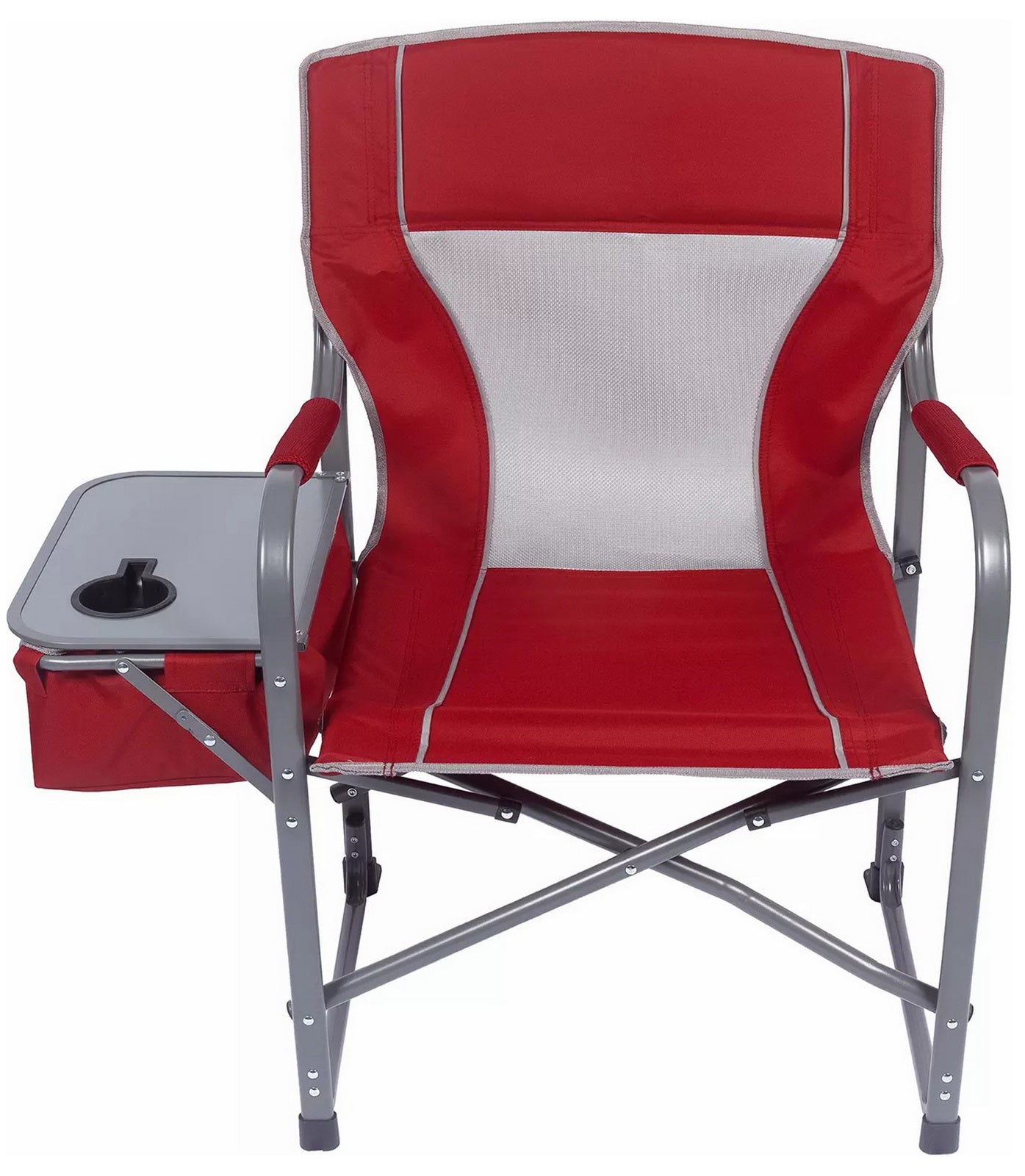Relax in comfort at your next family gathering, sporting event or BBQ in the Oversized Director's Chair. With a convenient 12-can capacity, fold-awaay insulated cooler and side table with a drink holder for a beverage, letting you stay refreshed wherever you go. This chair is the ideal accessory for all your outdoor activities including tailgating, parades, ball games, and camping.