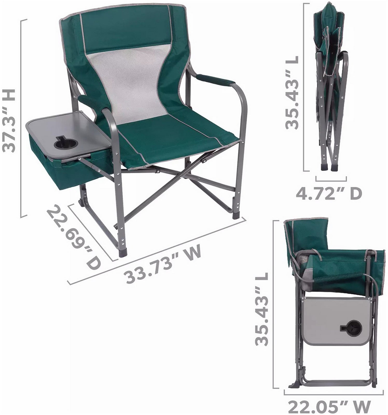 Oversized Directors Outdoor Camping Folding Chair 12 Can Cooler & Side Table