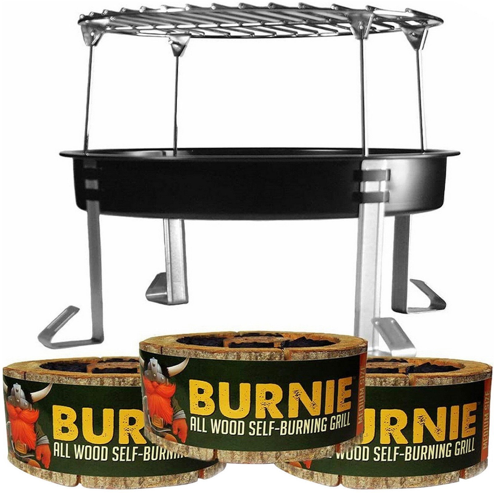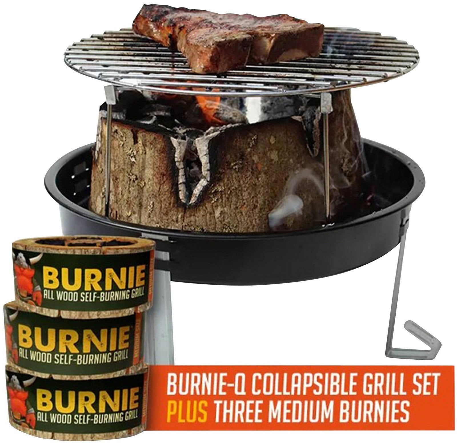 - Grill Set includes collapsible grill, carrying case, and 3 medium Burnie Grills